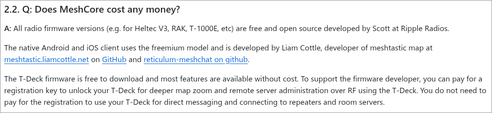 Да, мештастик далеко от нормальной сети и мешкор в этом плане лучше, еще посматриваю в сторону ретикулума но толку от него если по москве пара нод, разговаривать не с кем. Поясни про мешкор, если можешь сделай какой либо ман по прошивкам, я было сунулся но в результате набрел на то что у меня затребовало вводить код лицензии и платить, от чего я слегка прихуел и уж думал а не потянуться ли за идой, но так и так никого поблизости не нашло и смысла нет.
